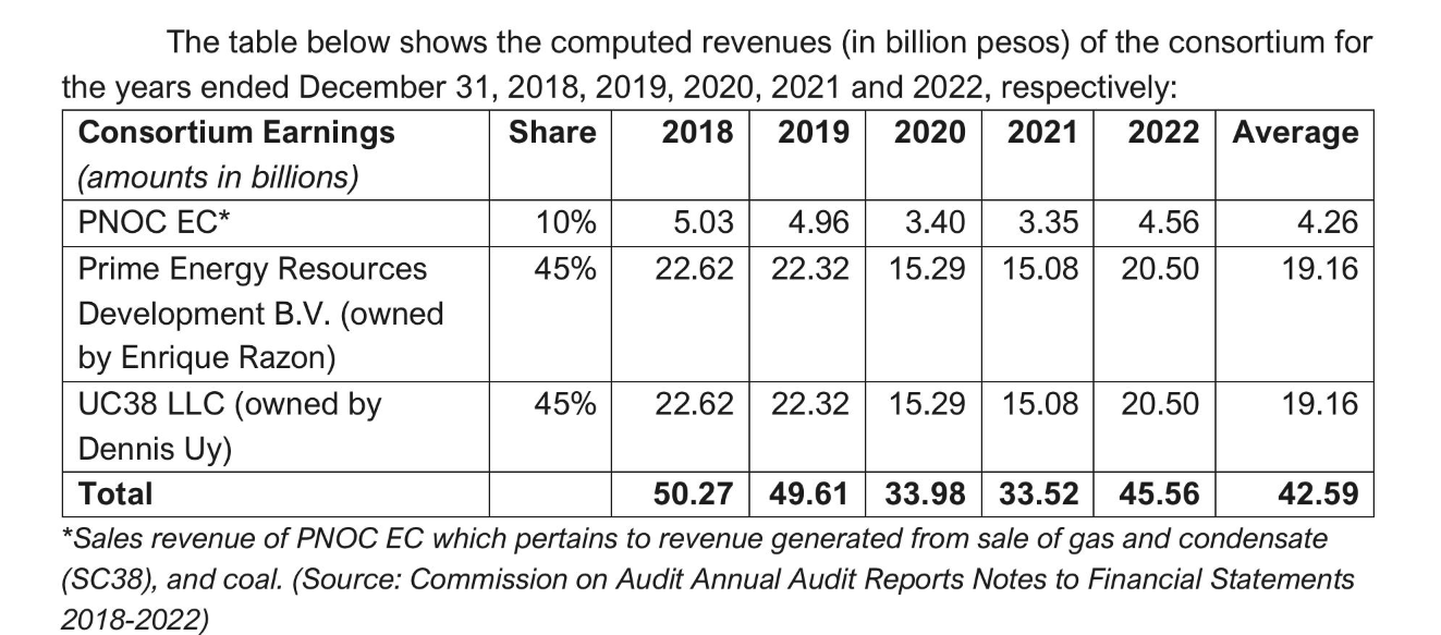 He said based on their extensive study, the renewal agreement entered into between the Government of the Republic of the Philippines through the Office of the President, Prime Energy Resources Development B.V. (owned by Enrique Razon), UC38 LLC of Udenna Corporation (owned by Dennis Uy) and PNOC Exploration Corporation on the 20th of April 2023 is grossly disadvantageous to the Filipino people on the following grounds: