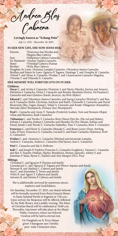 Appreciation Message from the Family of the Late Diego Roman Tenorio Benavente December 5, 2025 Read More →