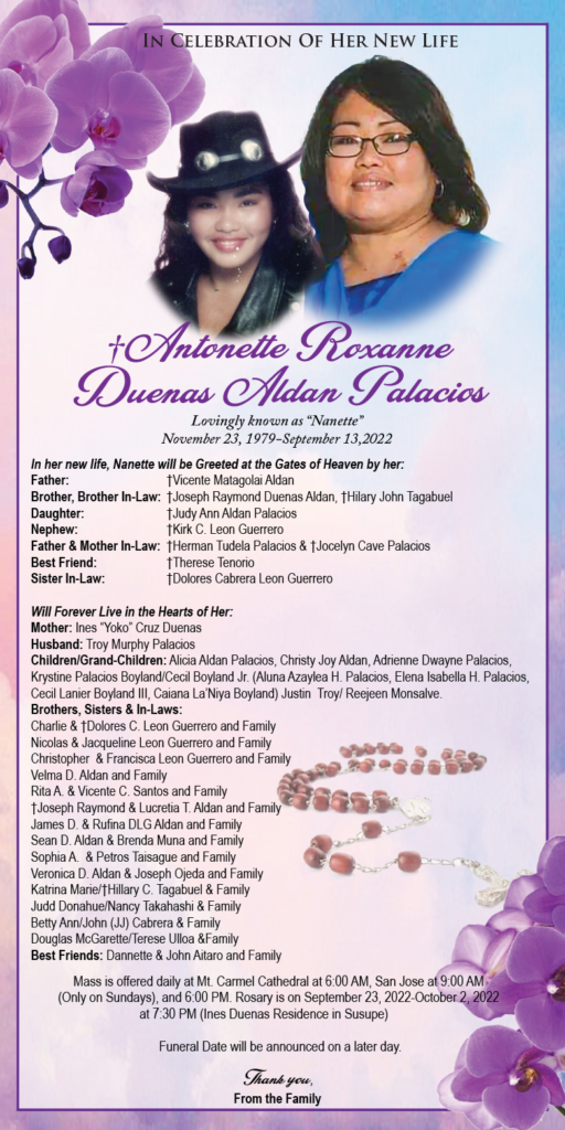 †Antonette Roxanne “Nanette” Duenas Aldan Palacios