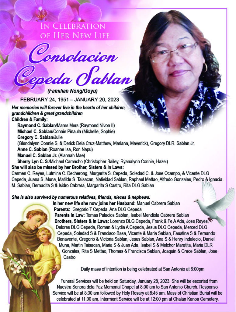 †Consolacion Cepeda Sablan