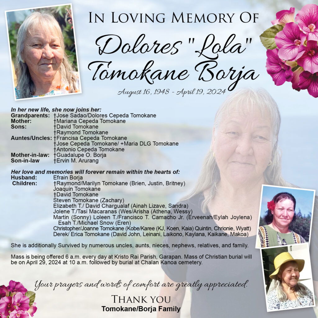 †Dolores “Lola” Tomokane Borja
