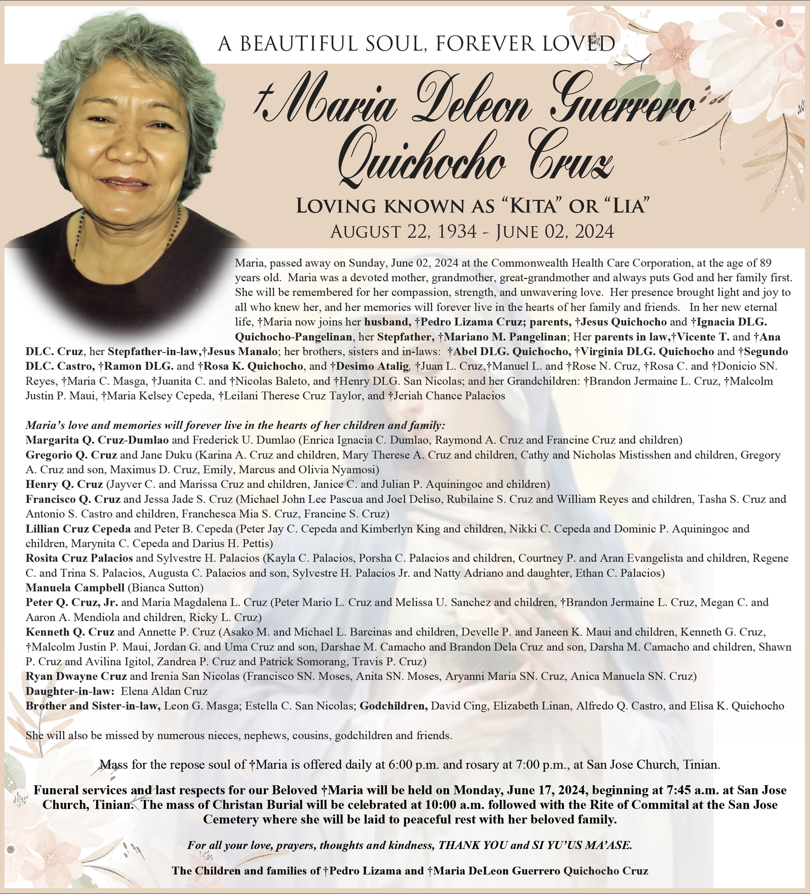 †Maria “Kita/Lia” Deleon Guerrero Quichocho Cruz