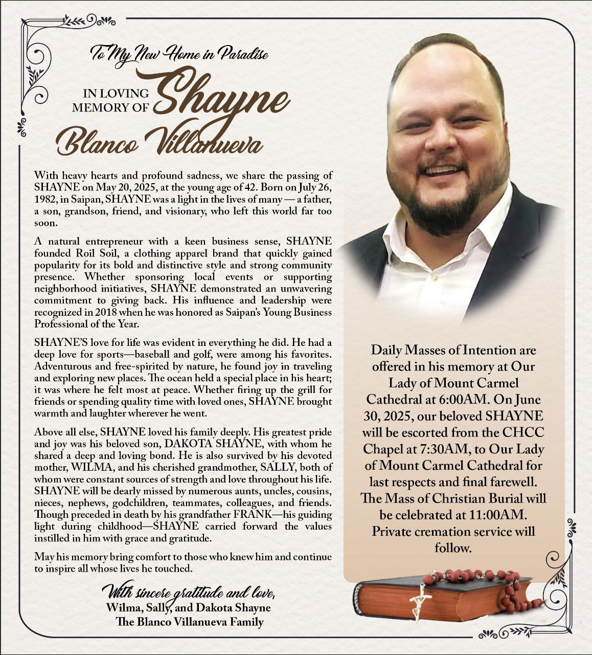 In Loving Memory of †Diego Tenorio Benavente