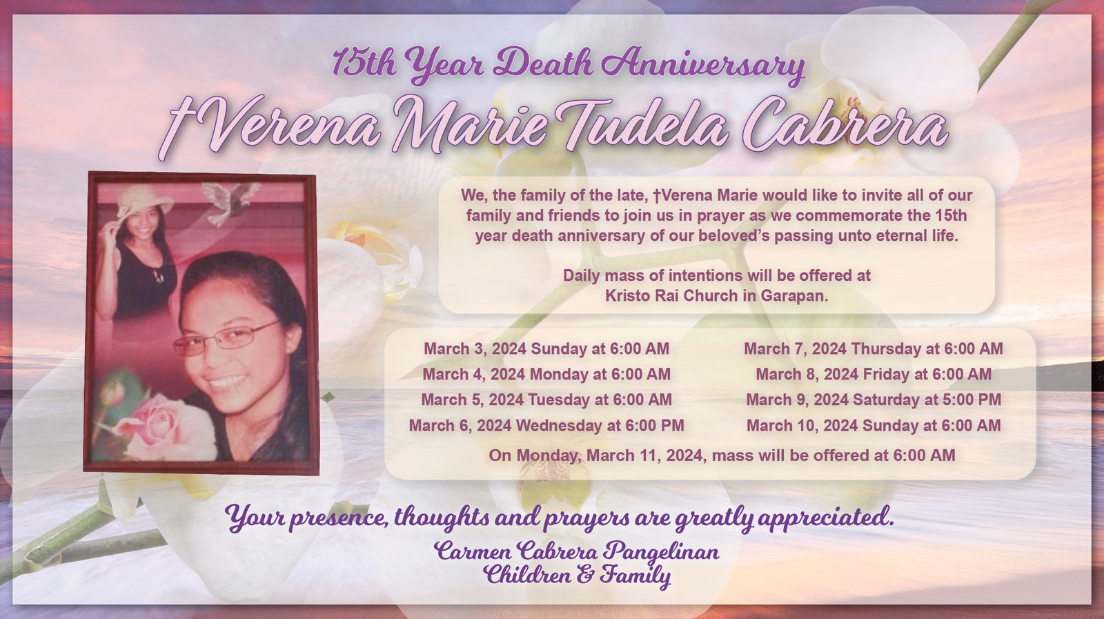 15th-Year Death Anniversary: †Verena Marie Tudela Cabrera