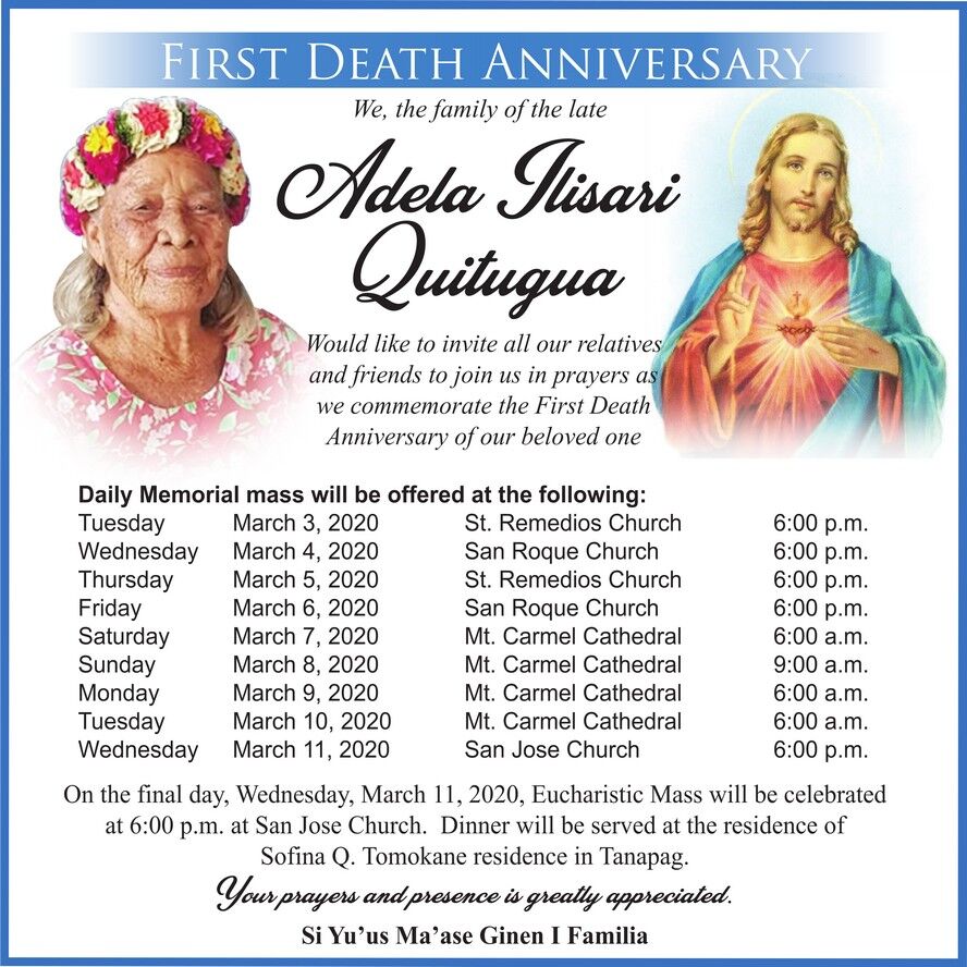 Adela Ilisari Quitugua first death anniversary