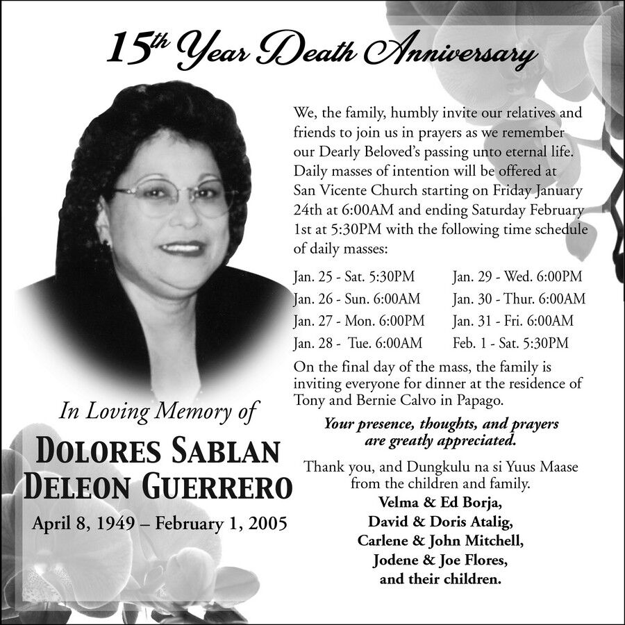 Dolores Sablan Deleon Guerrero 15th year death anniversary