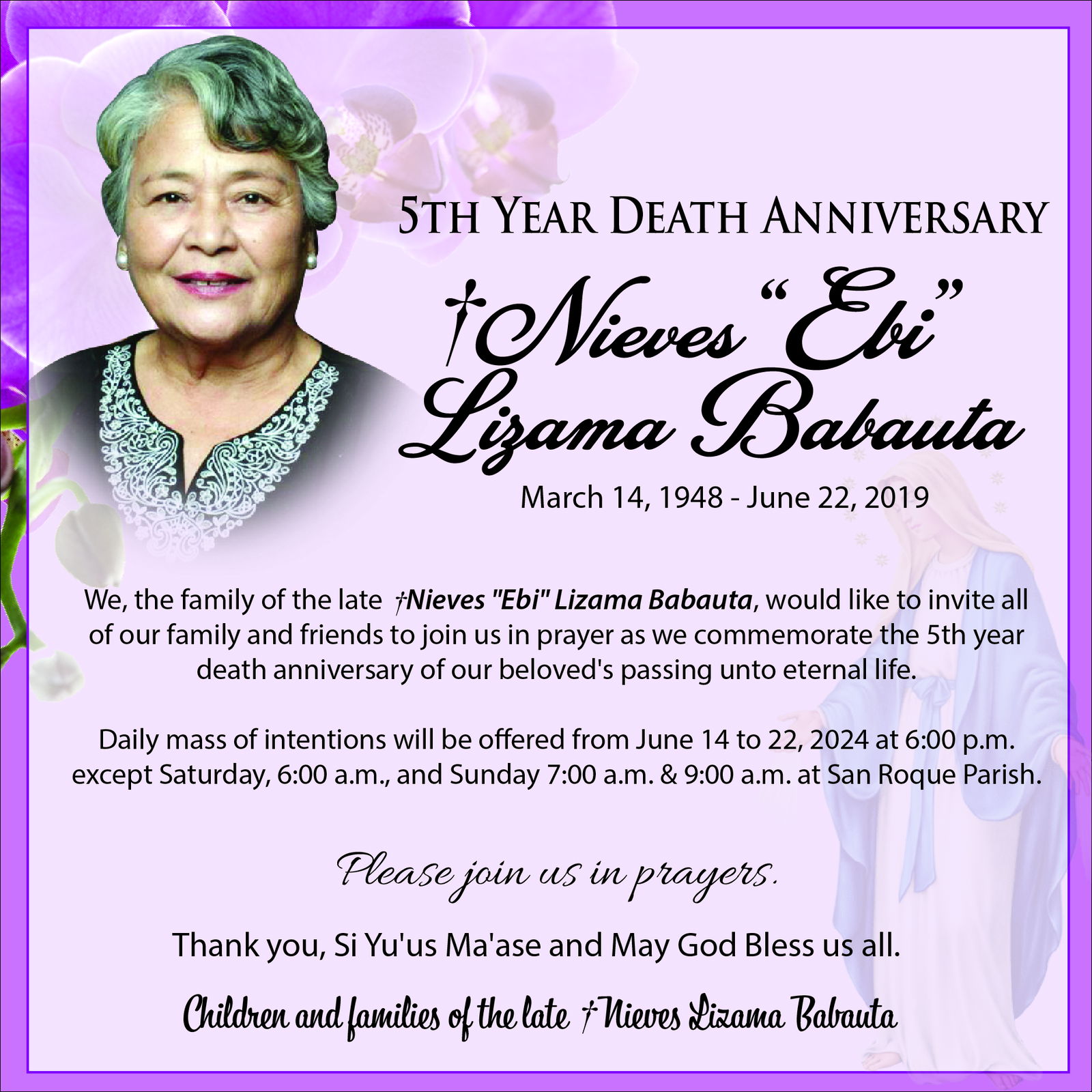 Fifth Year Death Anniversary: †Nieves “Ebi” Lizama Babauta