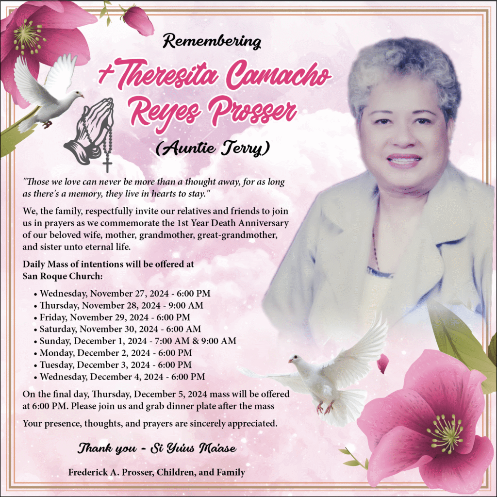 First Death Anniversary: †Theresita Camacho Reyes Prosser (Auntie Terry)