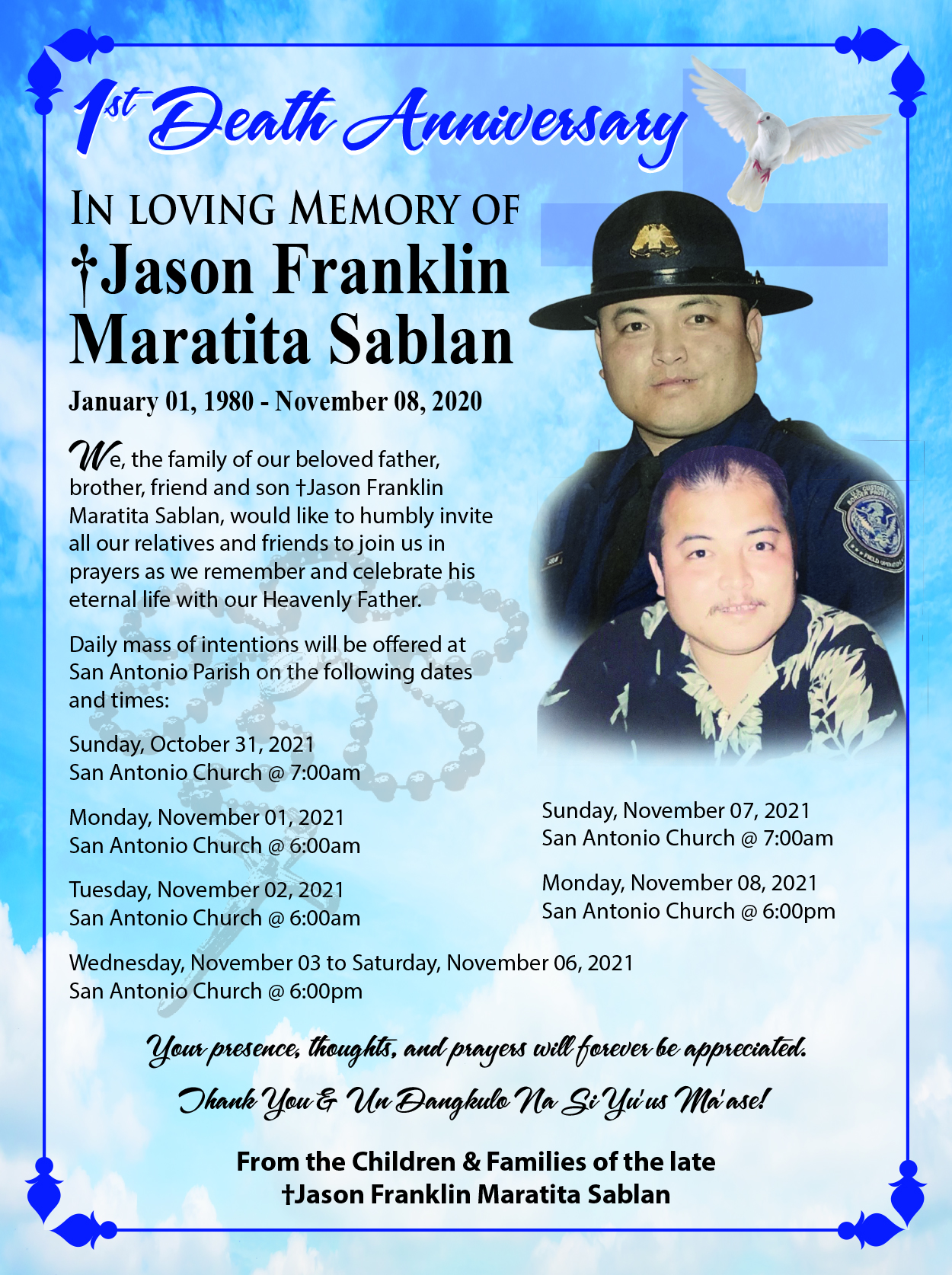 First Death Anniversary: ✝ Jason Franklin Maratita Sablan
