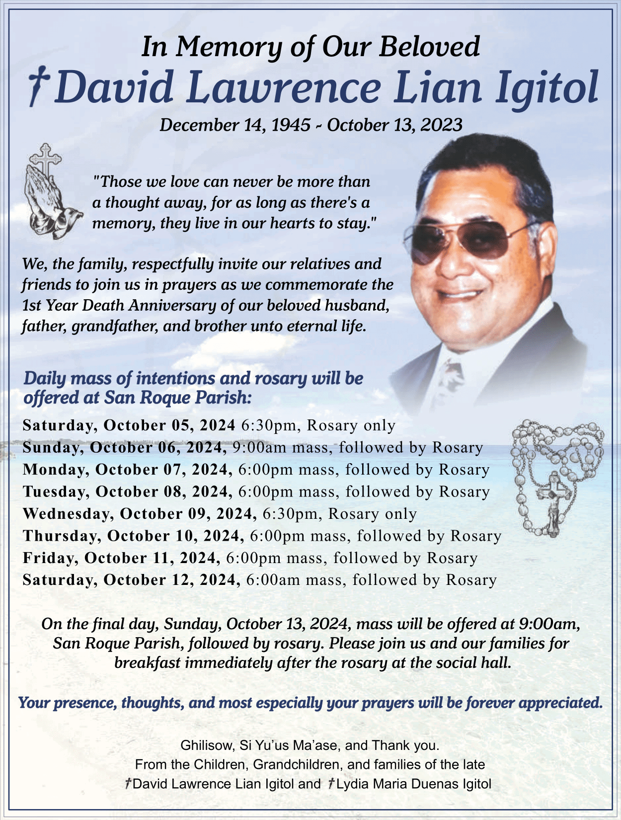 First Year Death Anniversary: †David Lawrence Lian Igitol