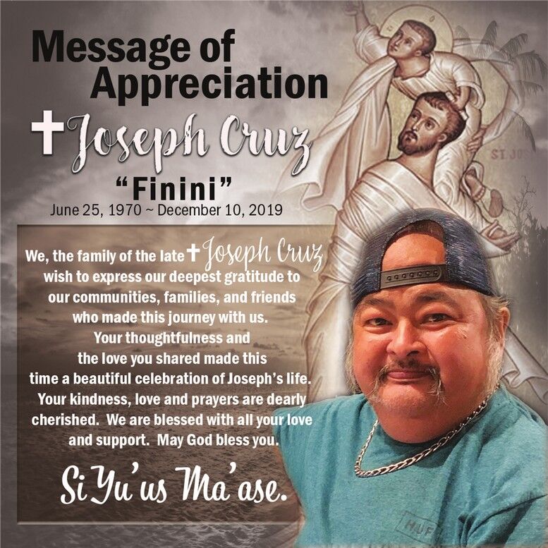 Joseph Cruz family message of appreciation