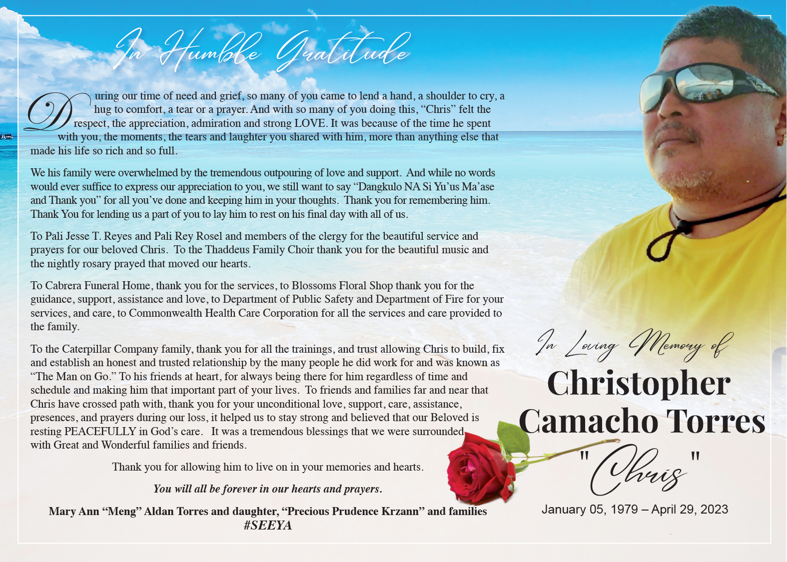 Message of Appreciation: †Christopher Camacho Torres