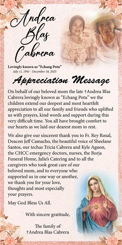 Message of Appreciation †Andrea Blas Cabrera