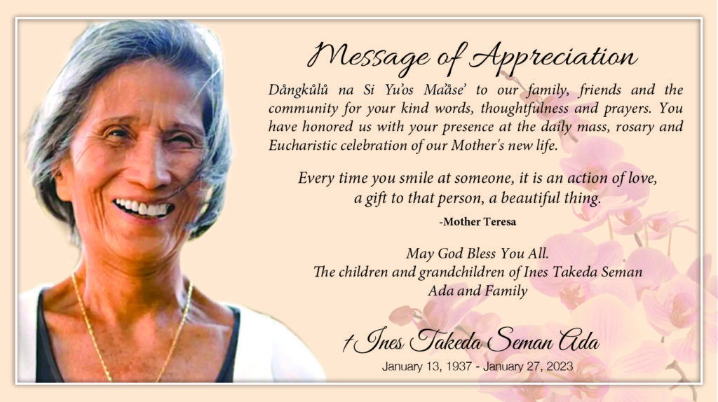 Message of Appreciation: †Consolacion “Chongki” Cepeda