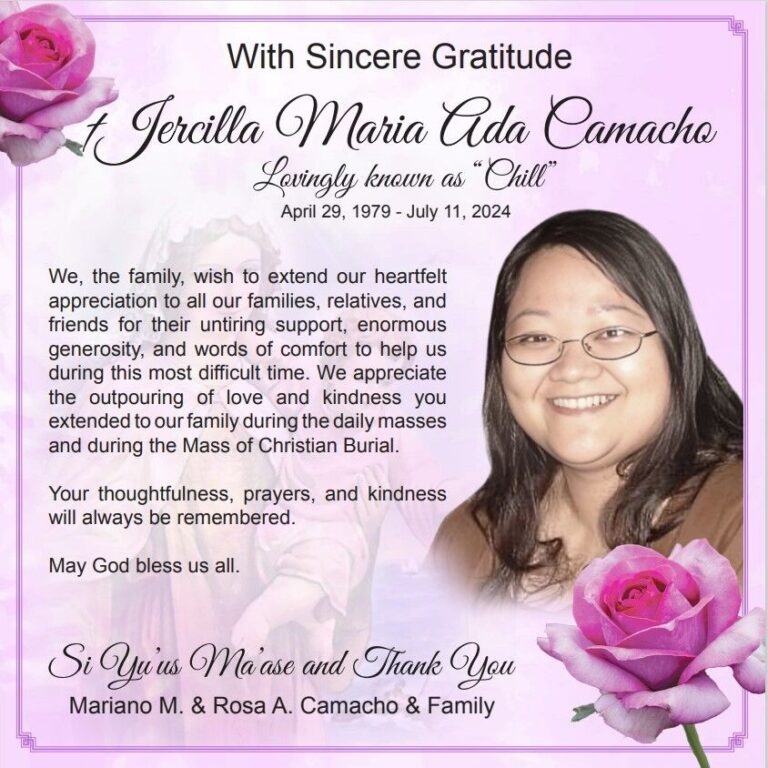 Message of Appreciation: †Jercilla Maria “Chill” Ada Camacho