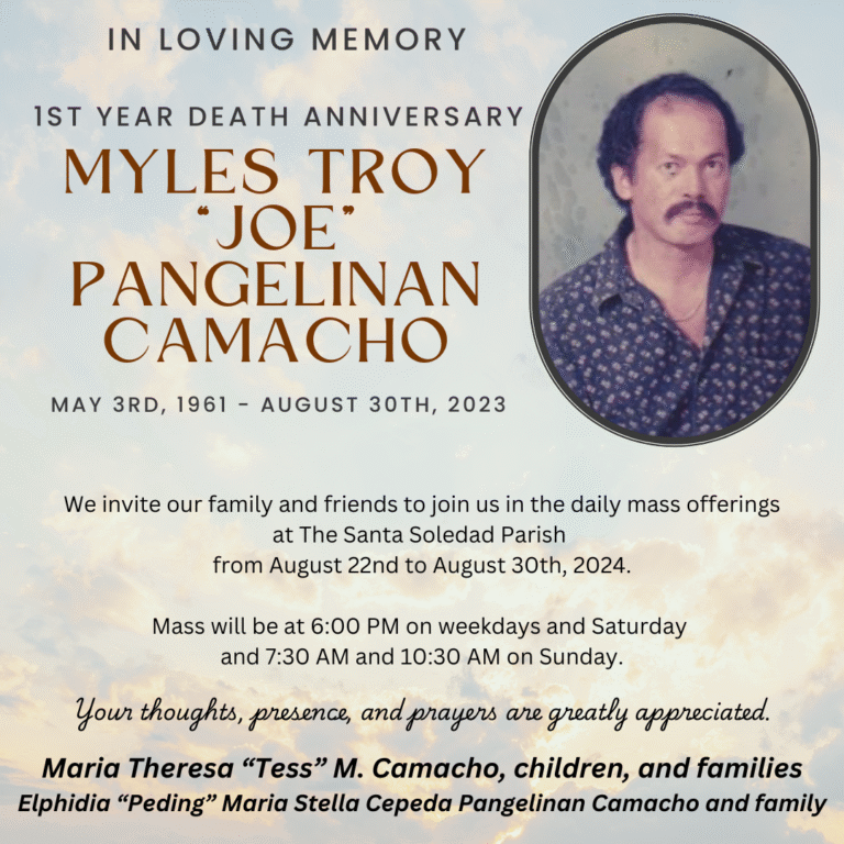 First Year Death Anniversary: †Myles Troy “Joe” Pangelinan Camacho