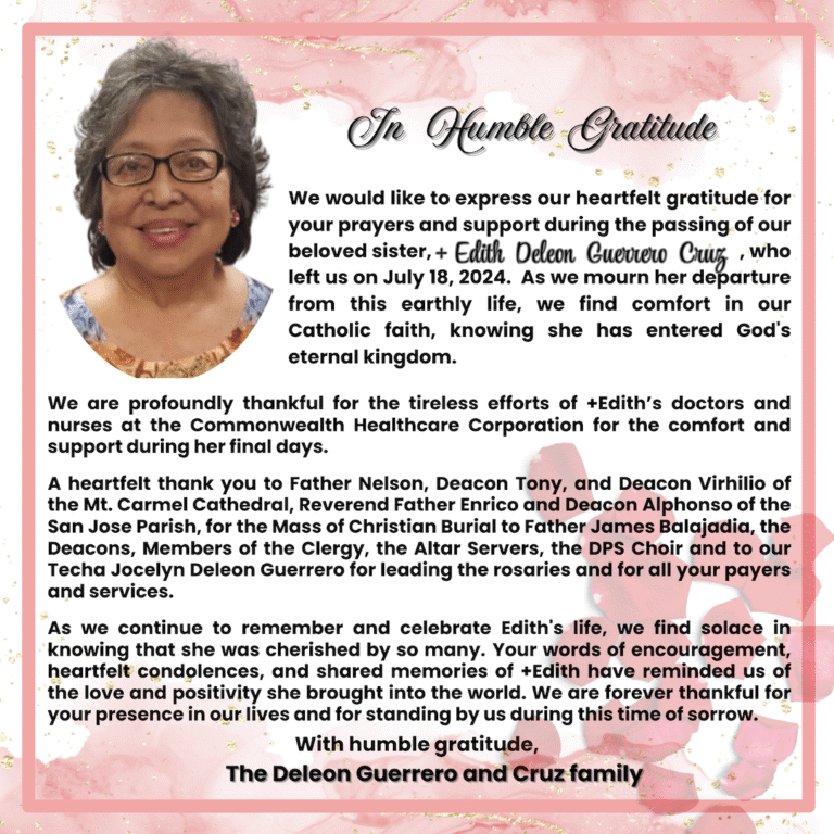 Message of Appreciation: †Edith Villagomez Deleon Guerrero Cruz