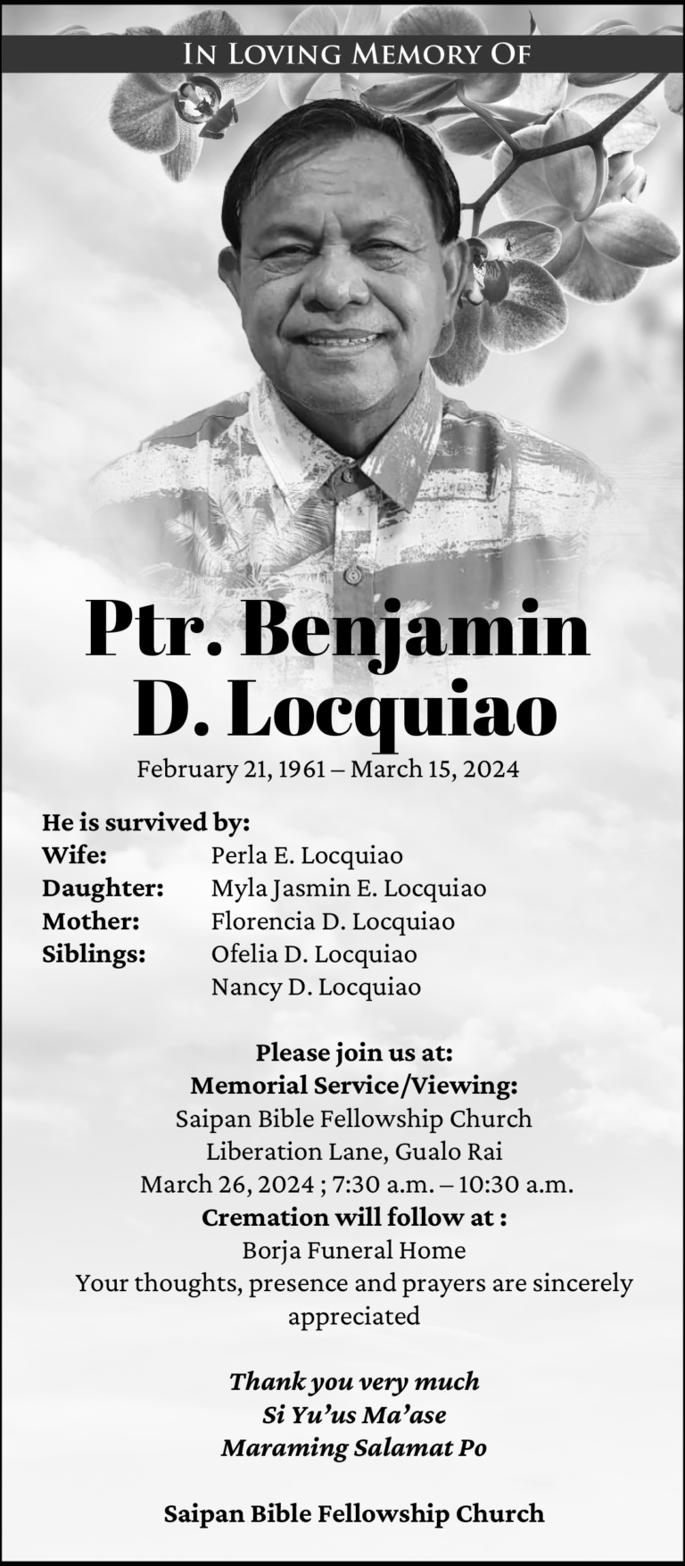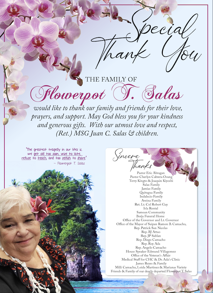 Message of Appreciation: †Flowerpot Tuiolosega Salas