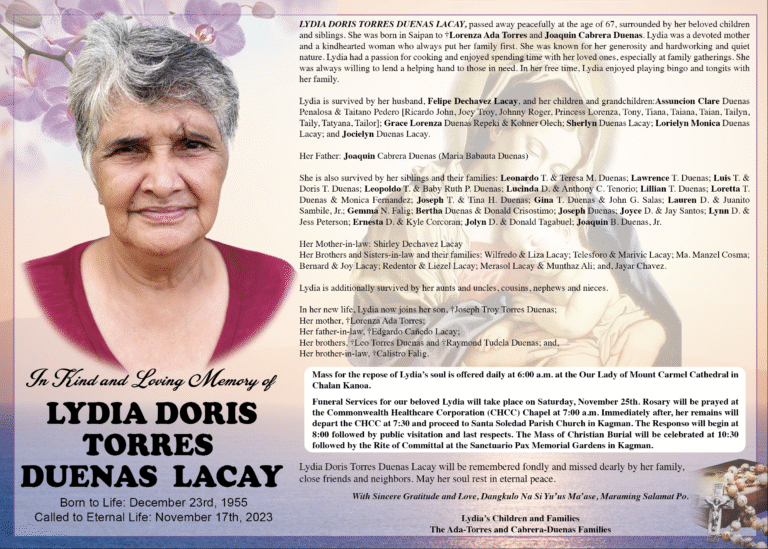 Message of Appreciation: †Lydia Doris Torres Duenas Lacay