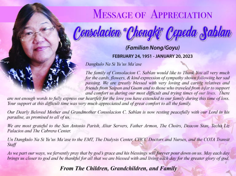 Message of Appreciation: †Consolacion “Chongki” Cepeda