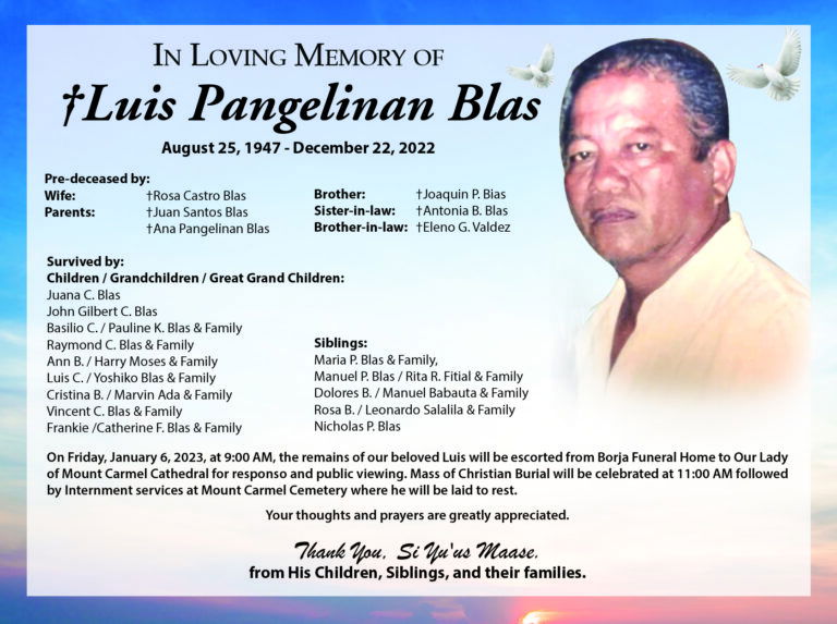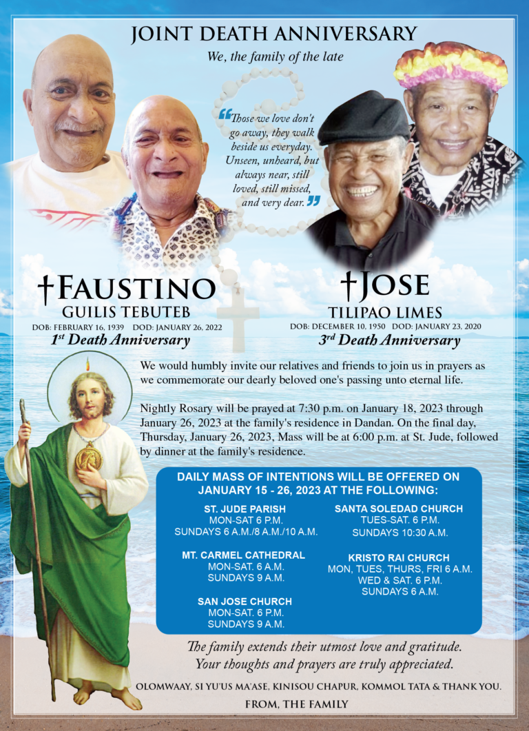 Joint Death Anniversary: †Faustino Guilis Tebuteb & †Jose Tilipao Limes
