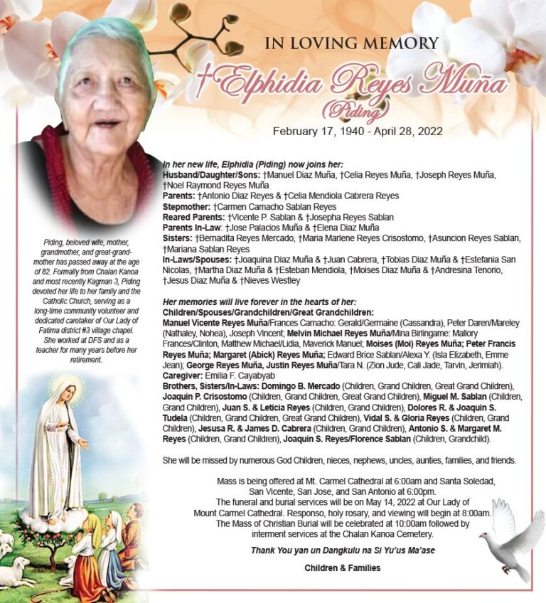 Message of Appreciation: †Concepcion Tenorio Sablan
