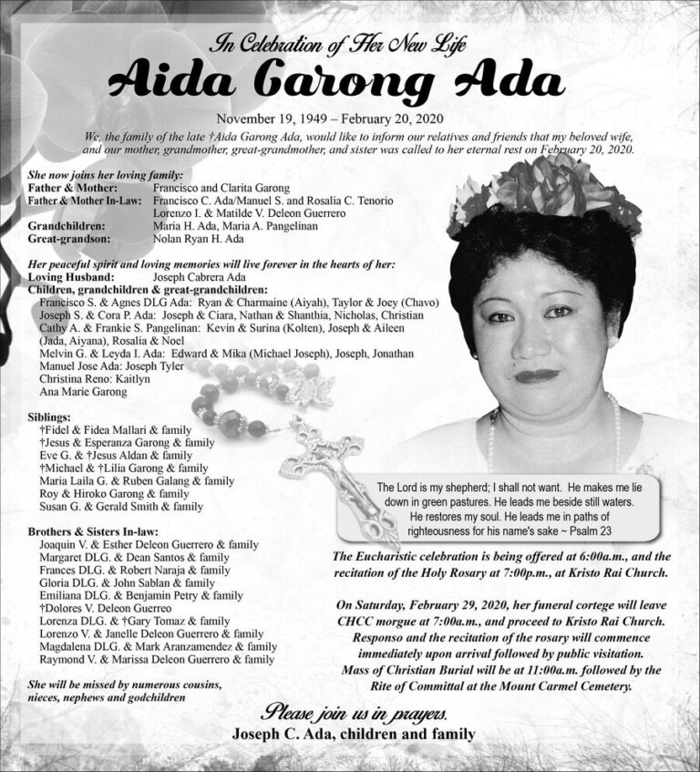 Maria Antonia Camacho Taitano & Norman Taitano Manglona joint death anniversary February 4, 2020 Read More →