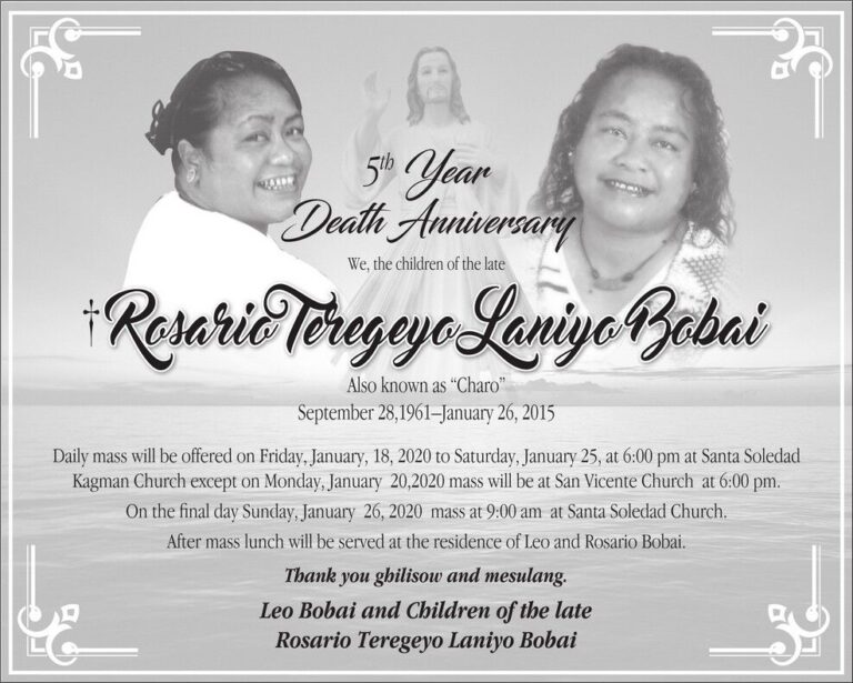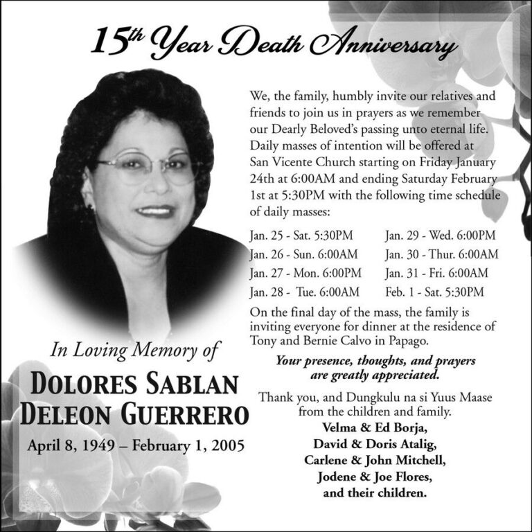 Dolores Sablan Deleon Guerrero 15th year death anniversary