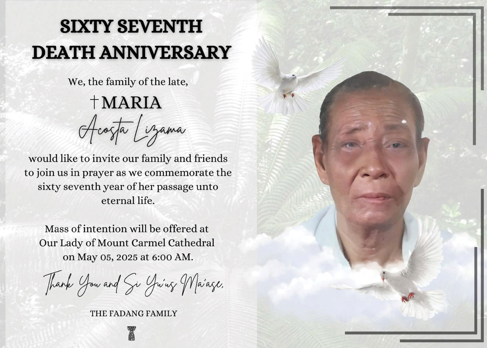 Sixty Seventh Death Anniversary †Maria Acosta Lizama