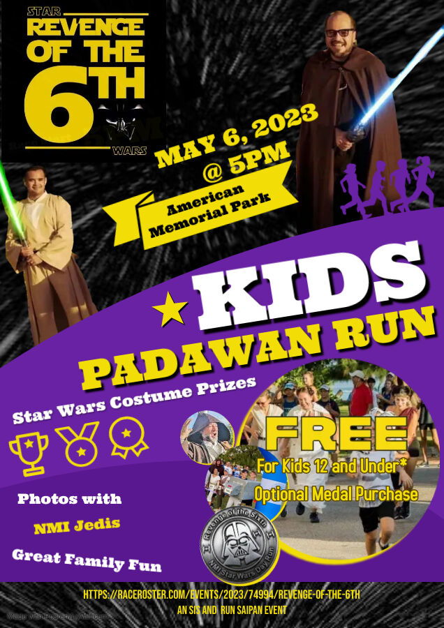 SAIPAN International School and Run Saipan will host the third annual Star Wars Day Run in the CNMI this Saturday. But this year, it has a twist. Instead of May the 4th Be With You, this year it will be the Revenge of the Sixth, a tribute to Star Wars-Episode III-Revenge of the Sith, the sixth movie in the series.