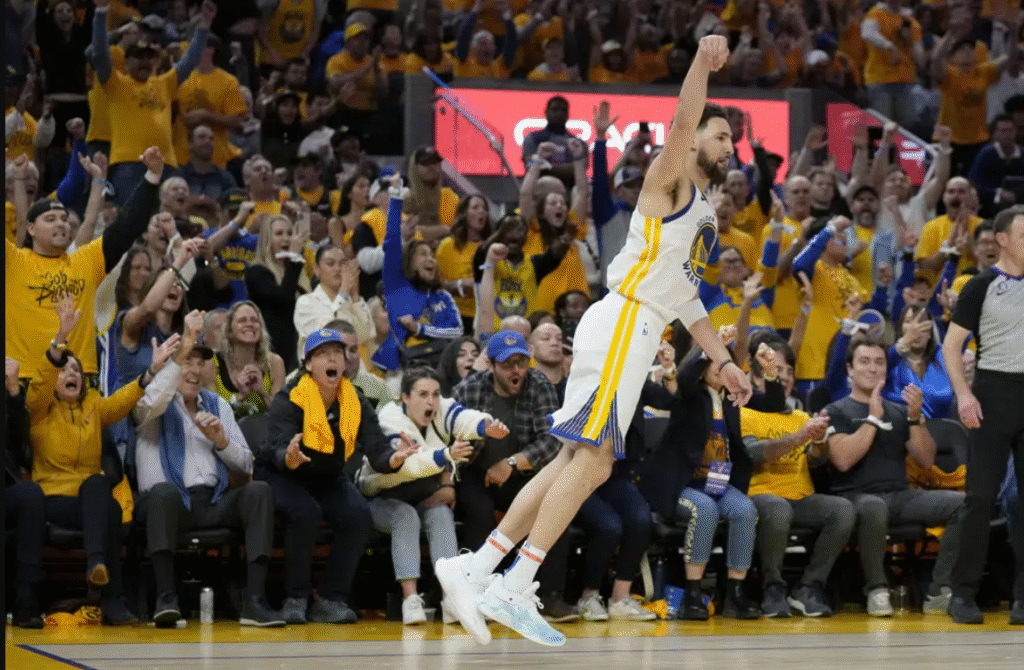 Klay Thompson made a baseline 3-pointer to beat the third-quarter buzzer and another with 3:24 left, finishing with 26 points for the Warriors.