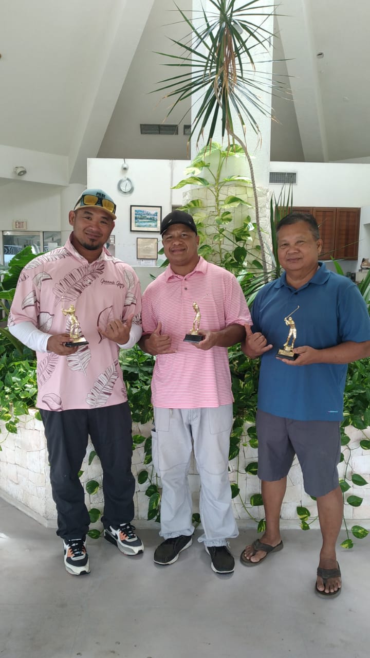 The top three players in the recently held Familia Golf Association April tournament at Kingfisher Golf Links pose for a photo. From left, Peter Mendiola, 2nd place; Simada Imrak, 1st place; and Joe Bermudes, 3rd place. John Matsumoto was the overall winner of the February 2023 tournament while the top three of the March 2023 tournament were Al Aldan, Rick Villagomez and Lester Manglona. All winners received cash prizes and trophies. The next tournament is set for May 21 at Kingfisher Golf Links with a tee-off time of 7:30 a.m. Founded by the late Anthony S. Camacho Jr., Familia Golf Association aims to bring the family and friends closer together while encouraging the young generation to develop their enthusiasm for the game of golf.