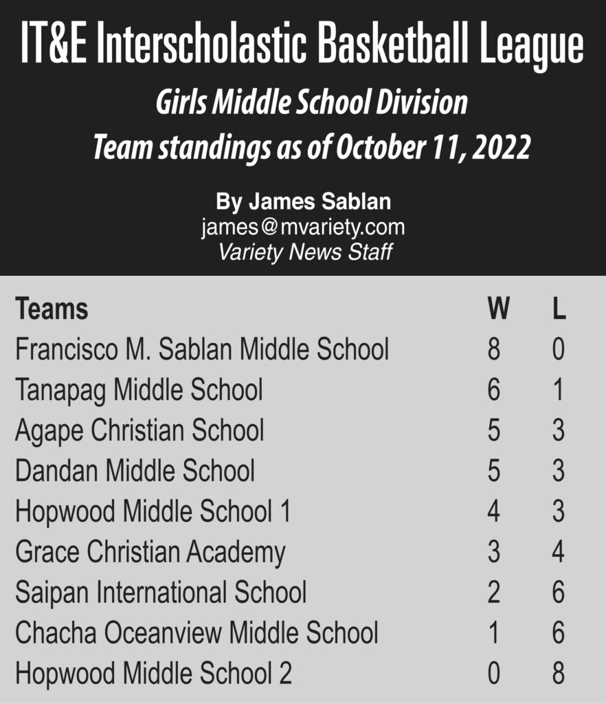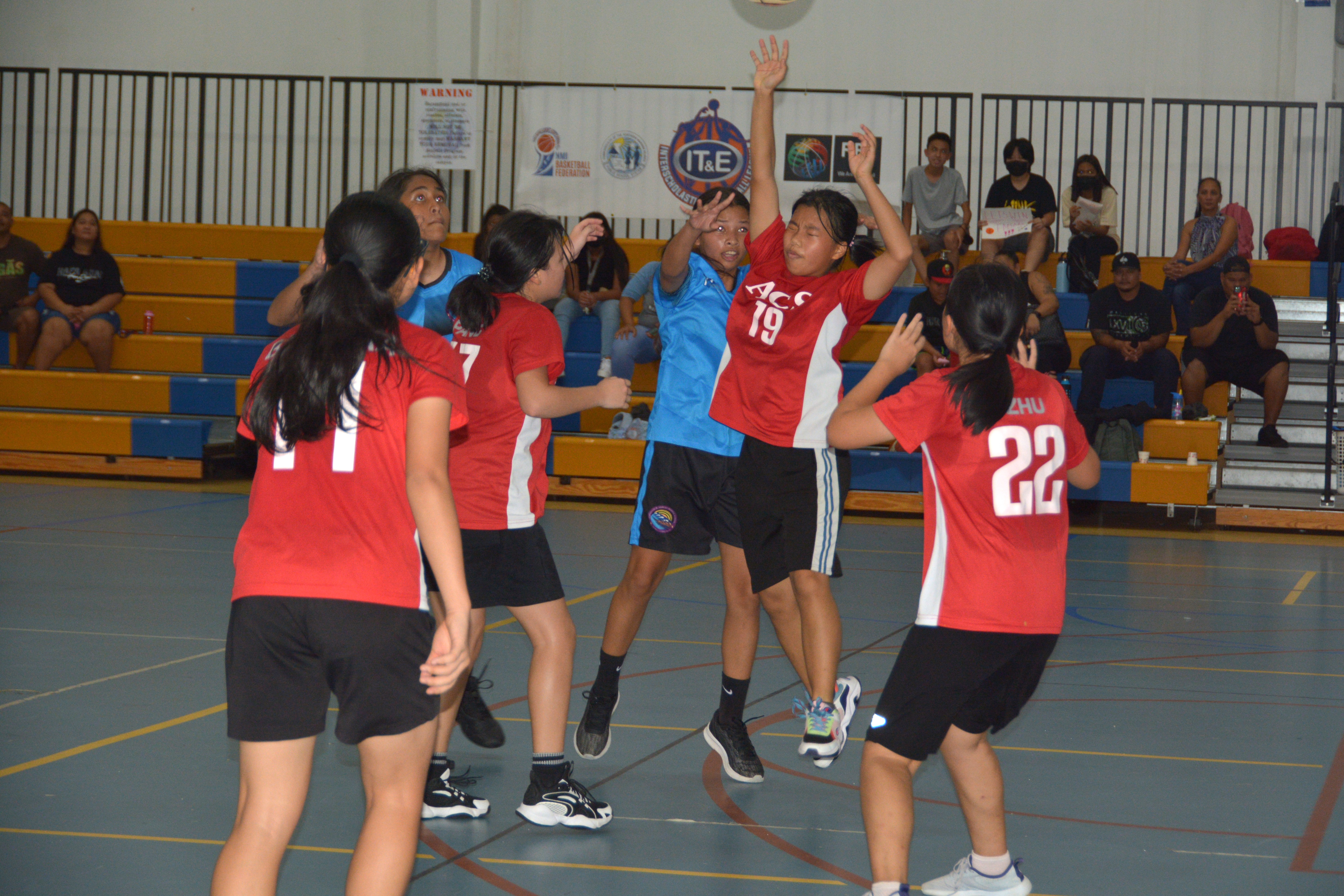 ACS and FMS battle for the loose ball possession during a girls middle school game of the IT&E Interscholastic Basketball League at the MHS gym. The playoffs will begin Thursday, Oct. 13.