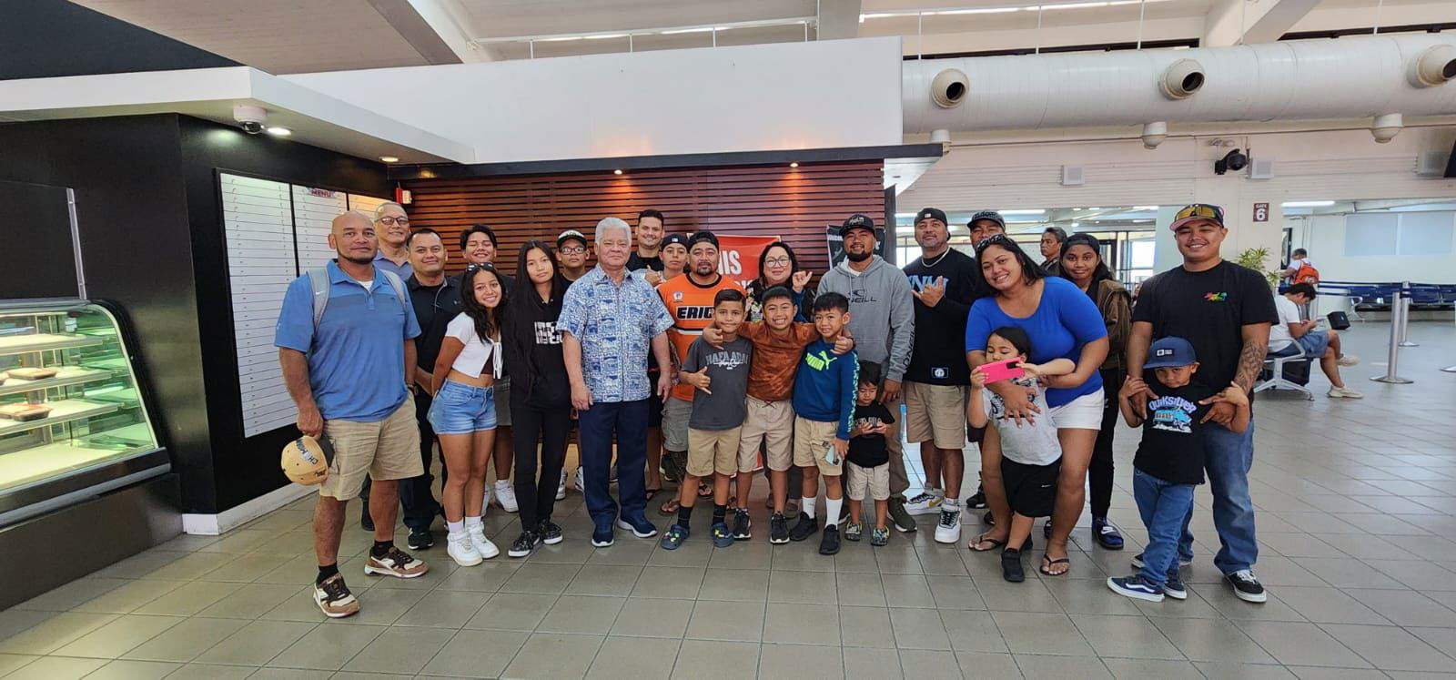 Twenty-eight Marianas Racing Association riders are on their way to Guam where they will represent the CNMI at Smokin’ Wheels on April 21, 22, & 23, at the Guam International Raceway. Photo shows Gov. Arnold I. Palacios with the MRA racers at the Saipan international airport just before they boarded the plane.