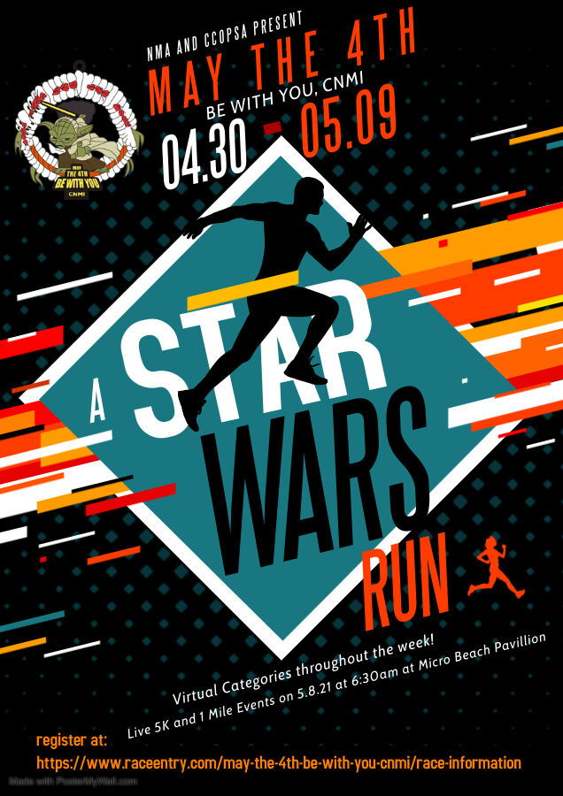 (Commonwealth Coalition of Private Schools Association) — The 4th of May has been unofficially dubbed Star Wars Day by fans, with greetings of “May the 4th be With You” heard across the globe. Northern Mariana Athletics and CCOPSA Sports have taken up the call and created a “May The 4th Be With You, CNMI” run with several distances and categories to choose from, any of which can be completed during the week surrounding Star Wars Day. All proceeds will go to youth athletic programs in the CNMI and you can register online at: https://www.raceentry.com/races/may-the-4th-be-with-you-cnmi/2021/register