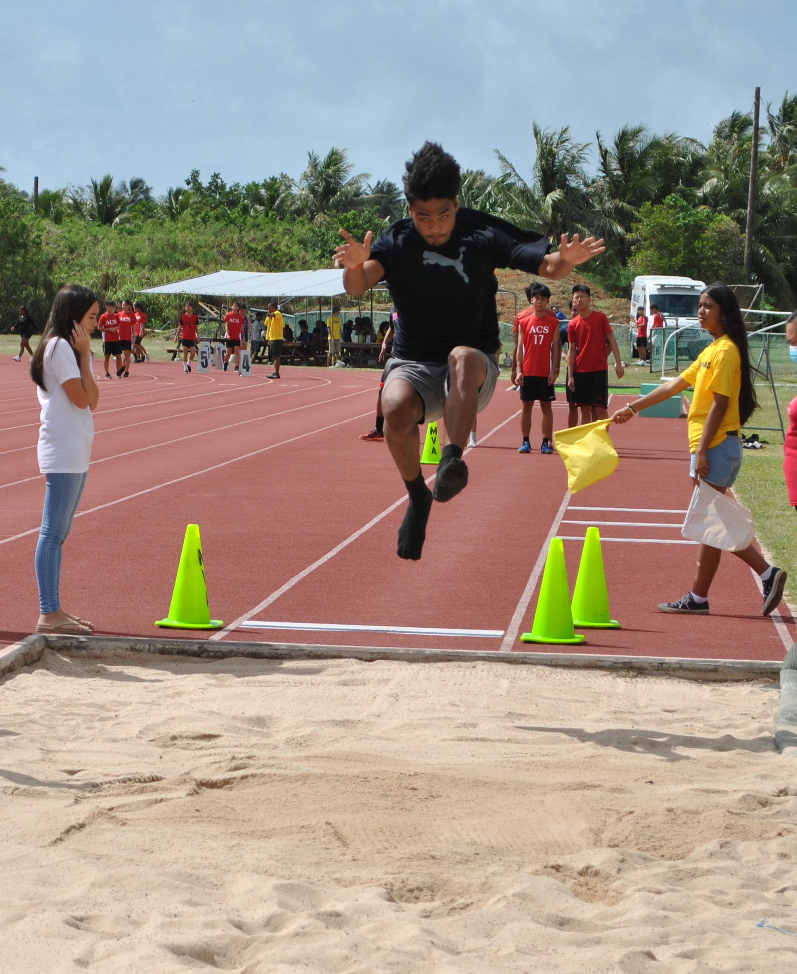 Kumuch not only displayed arm-strength, mobility and flexibility, but his leaping ability also served him well in the long jump, covering a distance of 5.66m. Coming in second and third were Tinian’s JC Guintu (5.62m) and ACS’ Li Antonio (5.50).
