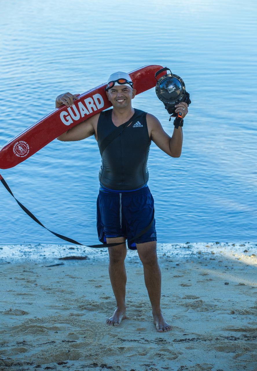Eric Abragan smiles after completing the swim portion of the Guam National Virtual Triathlon on Saturday. Contributed photo