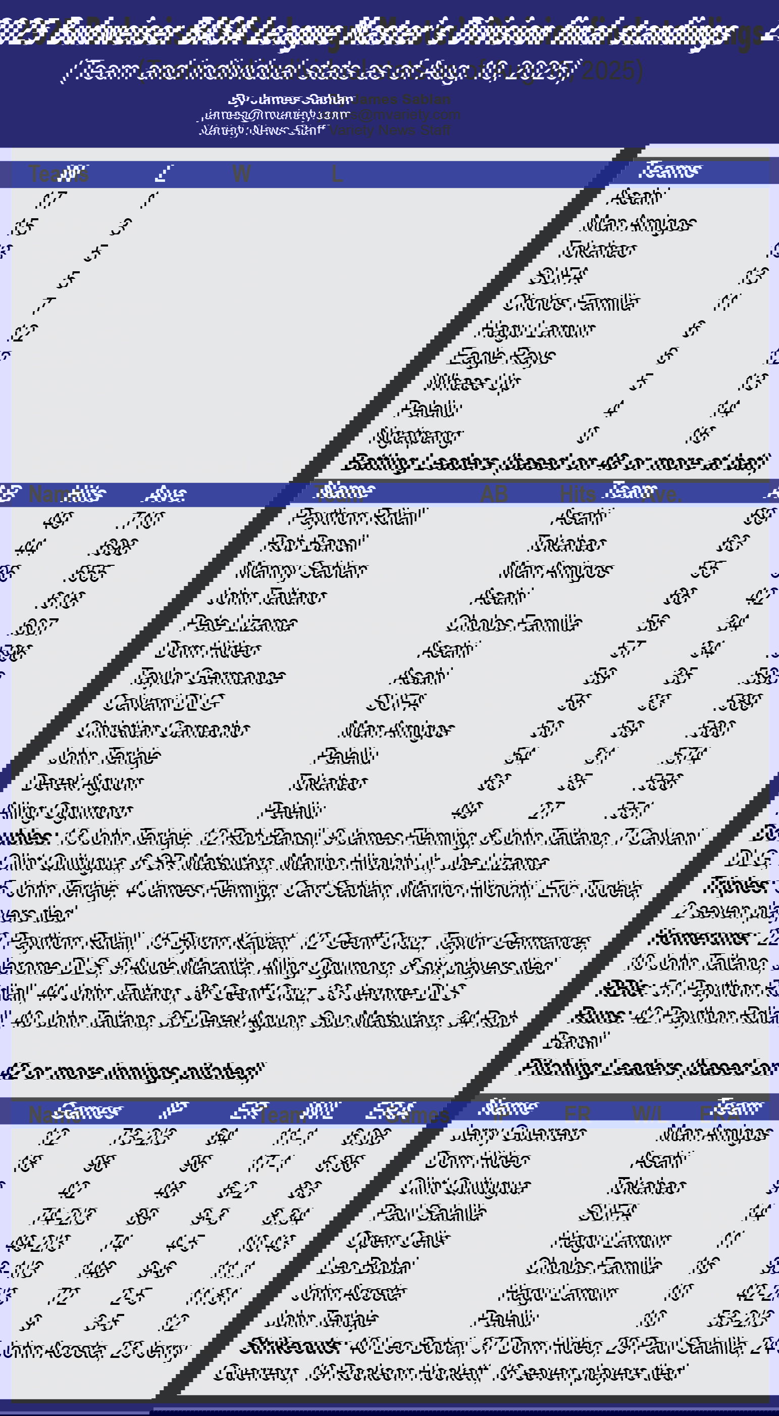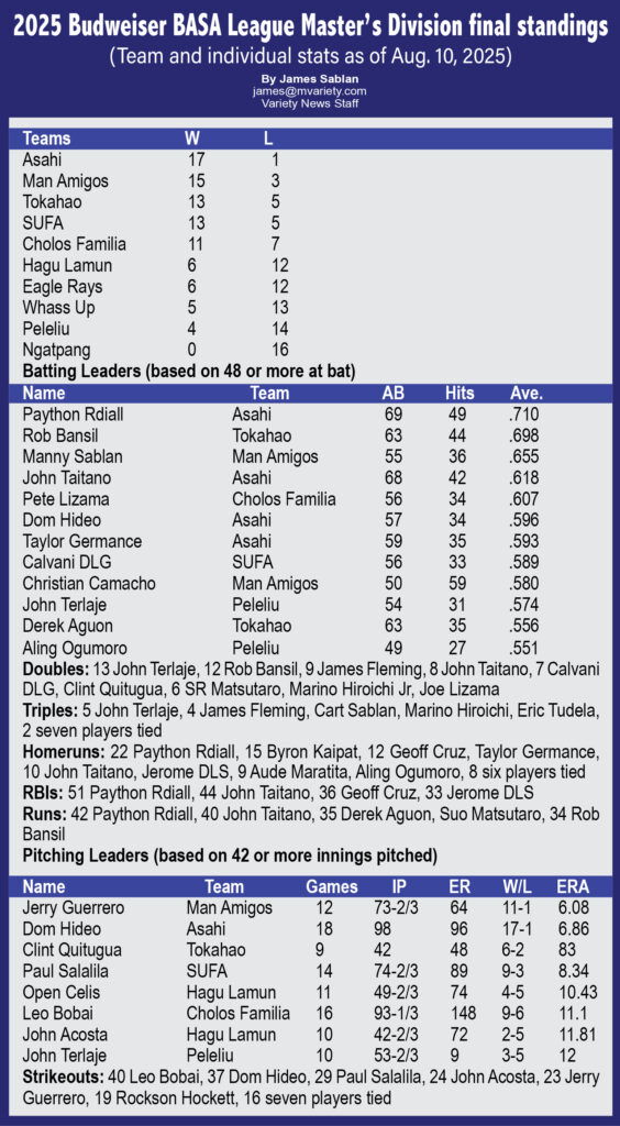 2025 Budweiser BASA League Master’s Division final standings