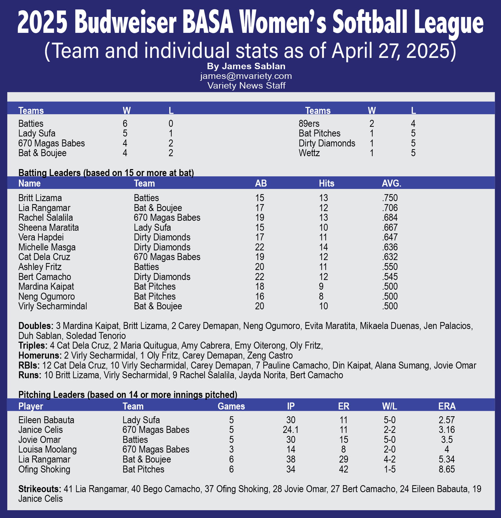 2025 Budweiser BASA Softball League