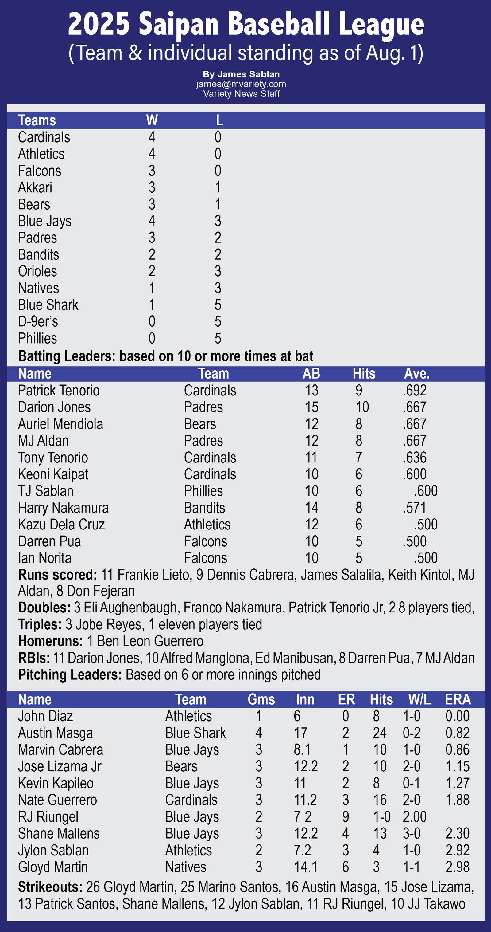 2025 Saipan Baseball League (Team & individual standing as of Aug. 1)