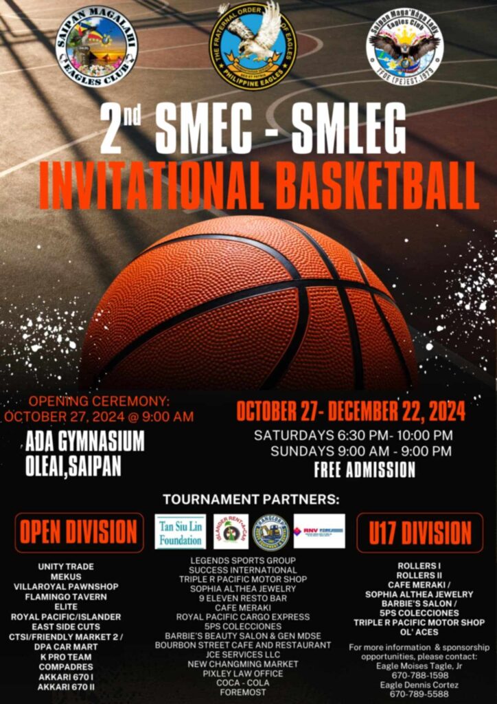 THE Fraternal Order of Eagles’ Saipan Magalahi Eagles Club and the Saipan Maga’Haga Lady Eagles Group proudly announce the return of the highly anticipated 2nd SMEC-SMLEG Invitational Basketball Tournament!