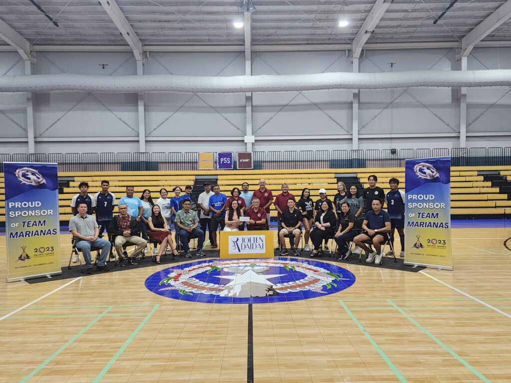 IT&E and IP&E officials and Northern Marianas Sports Association President Jerry Tan pose for a photo with the NMI athletes that will compete in the 2023 Pacific Games from Nov. 19 to Dec. 2 in Honiara, the Solomon Islands.