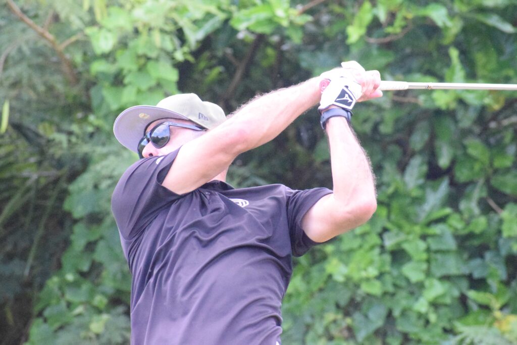 McDonald’s of Guam and Saipan President Jose C. Ayuyu tees off for Hole No. 16.