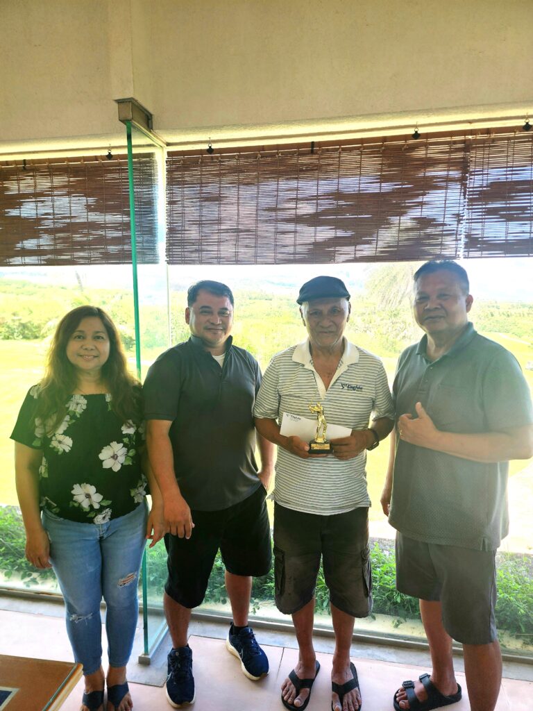 The Pin Seekers Golf Association headed by Joe Bermudes and Eddie Terlaje held their Ace of the Month tournament on their home course, Kingfisher Golf Links, on Sunday, Sept. 22, 2024. Manny Tenorio won the Ace of the Month title and was awarded a trophy and a golf certificate. PSGA aims to provide members and prospective members an enjoyable golf game and promote deeper camaraderie among the group through a monthly lunch fellowship. Photo shows Manny Tenorio, 2nd right, with Joe Bermudes, Eddie Terlaje and Kingfisher Golf Links assistant manager Jo Camacho.