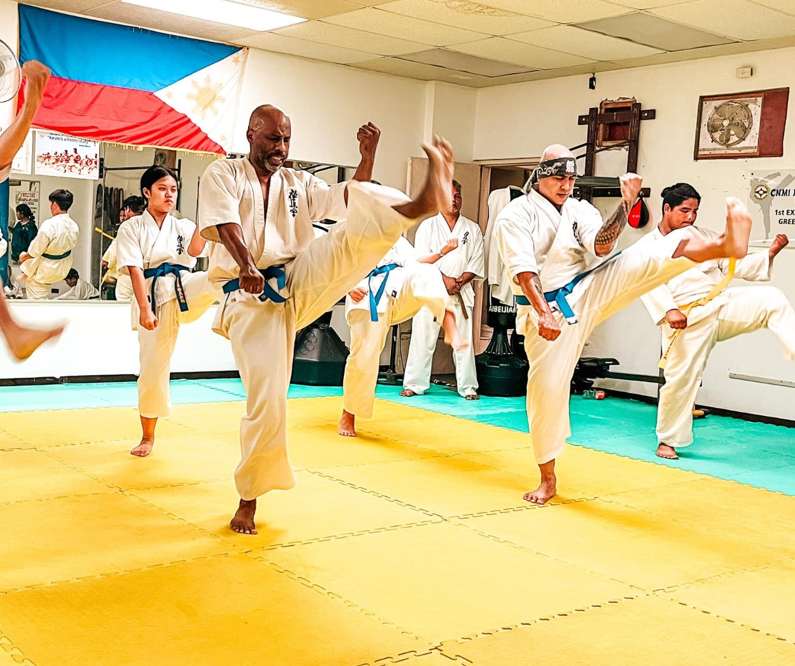 Jerry Diaz and others perform Kyokushinkai Kata moves at the CNMI Kyokushinkai Karate Dojo.