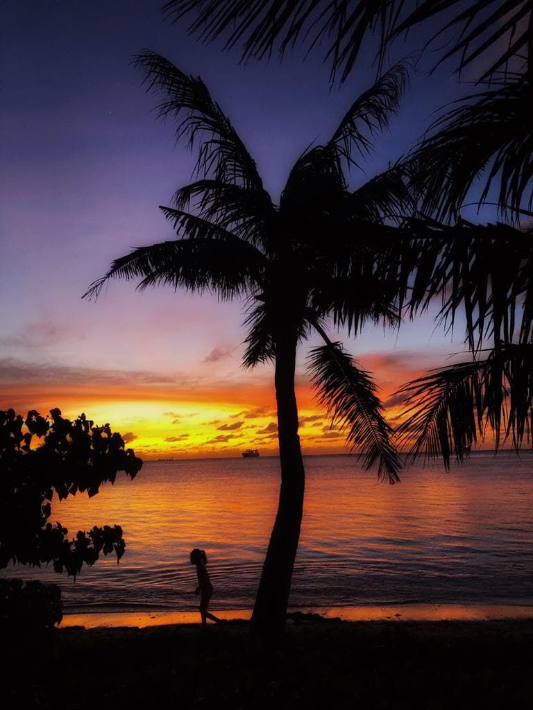 Sunset on Saipan as seen behind the Carolinian Utt in Garapan. Photo by Mayumi Ogumoro