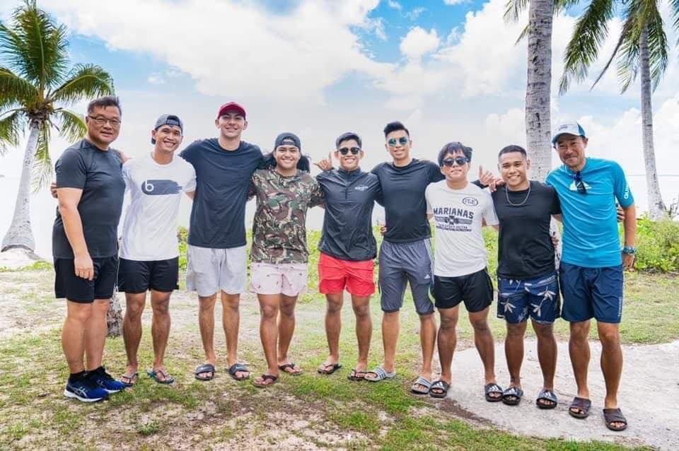 NMI men’s national team manager Norman Del Rosario, second left, standing, poses with the islands’ soccer team members. Contributed photo