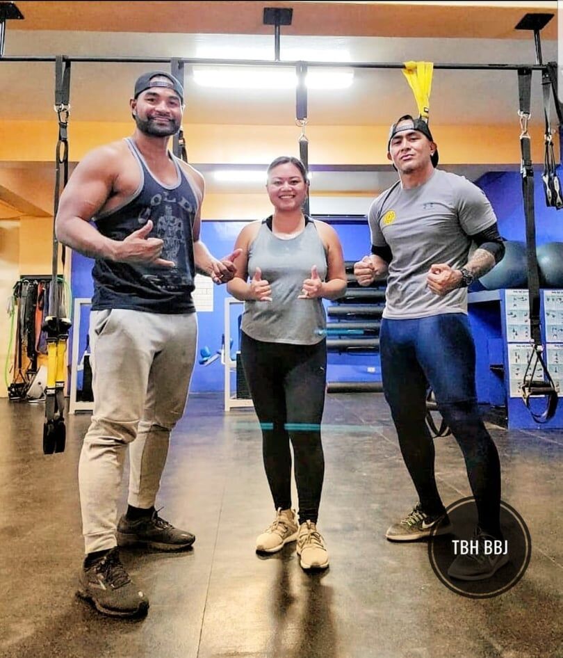 Kat Taylor Coldeen, center, with Gold’s Gym trainers Kelvin Fitial, right, and Jerry Diaz.