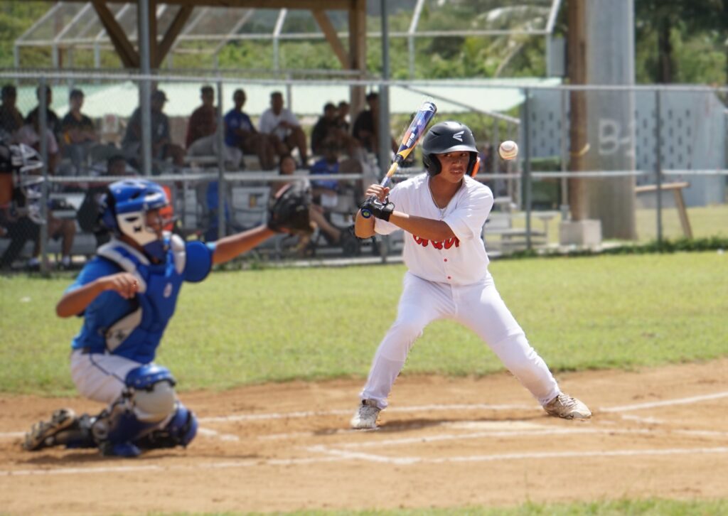 Braves Sr.’s Bungko Falig watches the pitch miss the zone during a Senior Division game of the 2025 Saipan Little League Baseball at the Francisco “Tan Ko” Palacios Baseball Field.