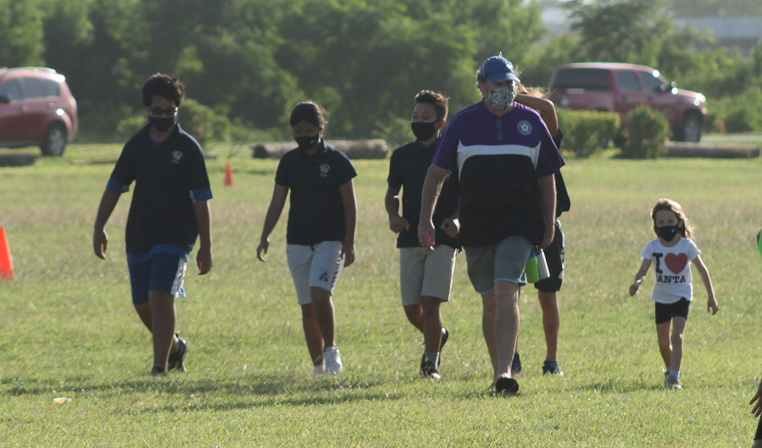 Brilliant Star School’s coach and runners make their way to the starting point. Photo by James F. Sablan Jr.